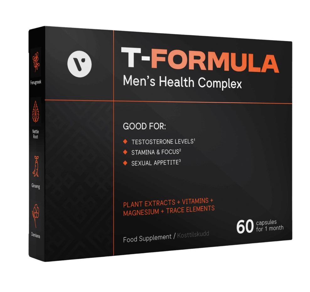 T-Fomula on miesten terveyden ja hyvinvoinnin tueksi suunnattu ravintolisä, joka on kehitetty tukemaan hormonaalista tasapainoa, energiaa sekä mielentestiä luonnollisesti ja tasapainoisesti. Tuote yhdistää vahvoja kasviuutteita sekä tärkeitä vitamiineja ja mineraaleja, joiden on kliinisessä tutkimuksessa sekä perinteisessä käytössä osoitettu voiman ja kestävyyden parantuvan. Päivittäinen käyttö voi auttaa kehoa sopeutumaan fyysisen ja henkisen stressin vaatimuksiin, ja sen tavoitteena on tukea miehiä säilyttämään elinvoima ja suorituskyky sekä arjessa että treenatessa. T-Fomula on suunnattu erityisesti aikuisille miehille, jotka haluavat ylläpitää optimaalista hormonitoimintaa, lisätä kestävyyttä sekä parantaa keskittymistä ja henkistä valppautta.